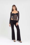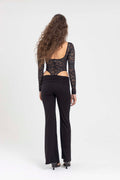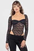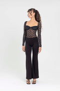 Presentamos nuestro nuevo Lace Black Bodysuit manga larga es la pieza perfecta para elevar cualquier look. Confeccionado en un tejido de encaje, elastico y suave, presenta un delicado bordado abstracto en tonos oscuros, ideal para crear un estilo audaz y sofisticado. Su escote pronunciado y corte ajustado acentúan la figura, mientras que el diseño de corte alto en las caderas añade un toque de sensualidad. Versátil y cómodo, es perfecto para combinar tanto con jeans como con faldas, adaptándose a cualquier ocasión.