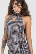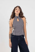 Presentamos nuestro nuevo Yume Top, delicado y estructurado y entalegado en el frente, reinterpreta la feminidad con un aire asiático contemporáneo. Confeccionado en una tejido plano a cuadros, esta pieza destaca por su cuello Neru estilo oriental y un corte frontal que define la silueta con elegancia sutil.