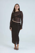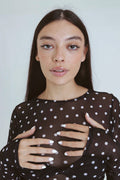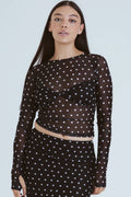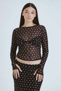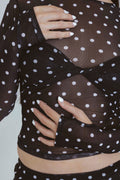 Camibuso en mesh 100% poliéster con estampado de polkadots.