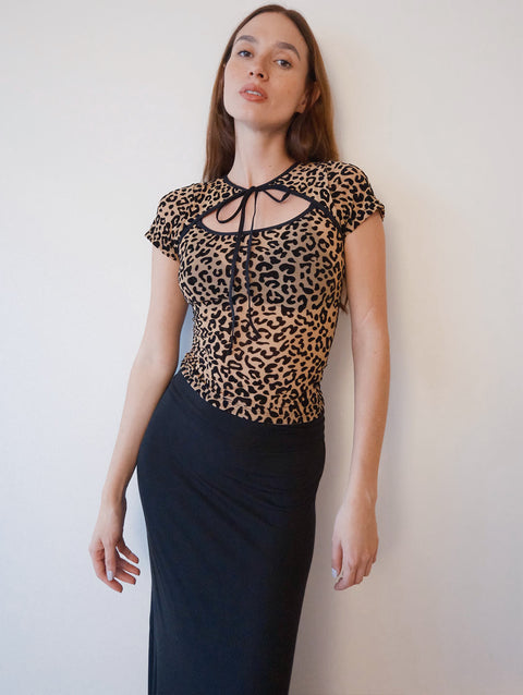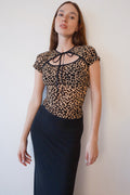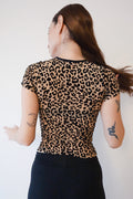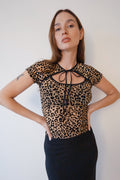 Top en mallatex con efecto devoré en forma de animal print.