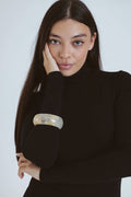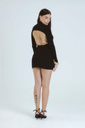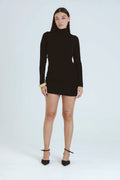 Vestido mini en algodón lycra semi-pesado, de manga larga y cuello tortuga.