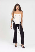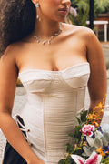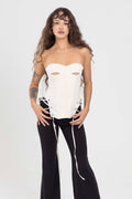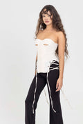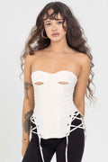 Este corset redefine la feminidad contemporánea con un diseño elaborado en materiales naturales y detalles que destacan: