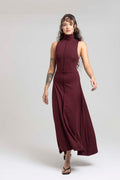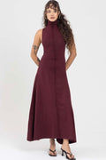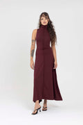 Con cuello tortuga alto, silueta ceñida y corte largo fluido, este diseño sin mangas abraza el cuerpo con una caída natural que estiliza y libera.