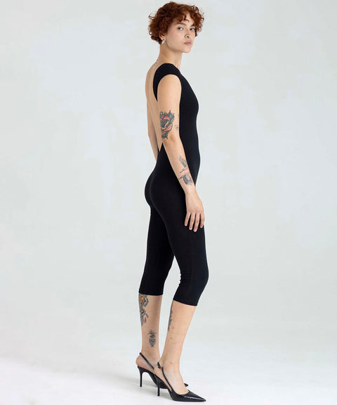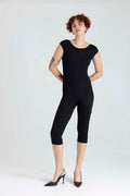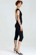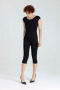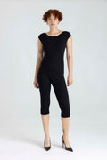 Presentamos nuestro nuevo Enterizo Greta, cuello delantero al ojal, posterior con escote profundo, largo tipo capri con ruedo. Elaborado en Lycra Negra.